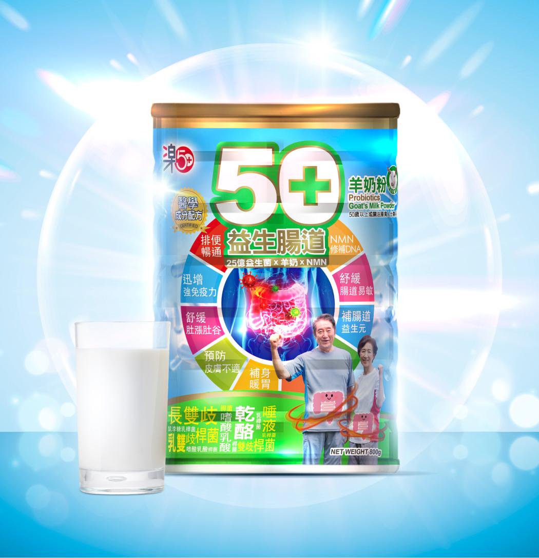 樂50+ 益生腸道羊奶粉是一款專為50歲或以上人士設計的益生腸道營養補充品,每100克羊奶粉中含有25億益生菌,助您維持腸道平衡,特別適合腸道健康需要者及乳糖不耐受者。樂50+益生腸道羊奶粉不僅富含營養,還具有易於消化的特性,有效改善胃氣脹、腸胃不適,或提升整體免疫力,樂50+ 都是您腸道健康的不二之選。
